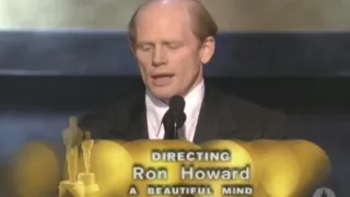 Es precioso, la verdad. Estoy agradecido. Muy agradecido por esto. Y estoy agradecido por una vida entera empleada en realizar el proceso creativo que hacemos. Agradecido por haber sido instruido por un hombre extraordinario, mi padre Rance Howard, y mi difunta madre Jean Howard. Y también quiero mencionar que antes de que mi madre pasara a mejor vida, hace alrededor de 18 meses, ella predijo que esto me iba a ocurrir con esta película. Bien, ella también hizo esa predicción con cada una de las películas que he dirigido desde 1983. Por eso ahora ya sabéis algo sobre mi mamá. Gracias mamá. Hay otros amores en mi vida. Mi increíble esposa Cheryl, ella es algo increíble. Y mis hijos en casa: Bryce, Jocelyn, Paige y Reed. Gracias a todos por la más importante de las razones.